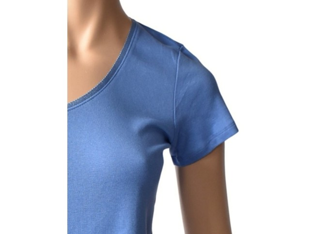 Tee-shirt col V, manches courte - Composition : 50% Coton, 50% Modal