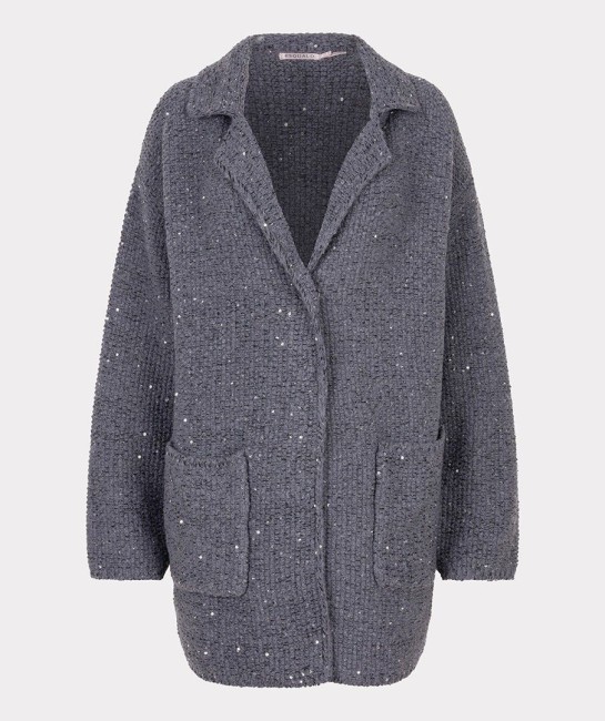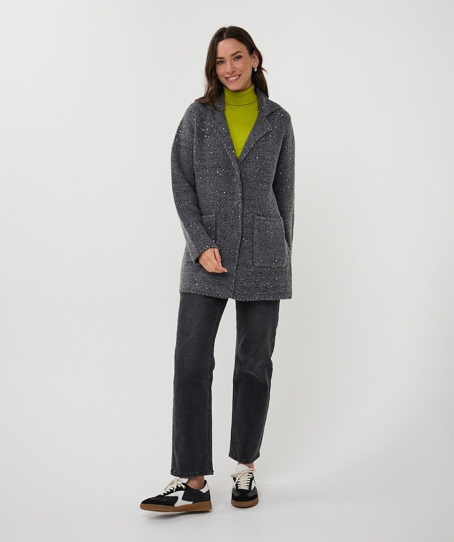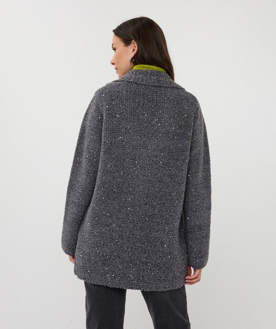 Chaud et élégant à la fois ! Ce cardigan fin à poches latérales est un véritable atout grâce à ses nombreux petits sequins entrelacés qui scintillent à la lumière. Le mannequin mesure 1,73 m et porte une taille 38 - Composition : 60 % acrylique - 35 % polyester - 5 % élasthanne
