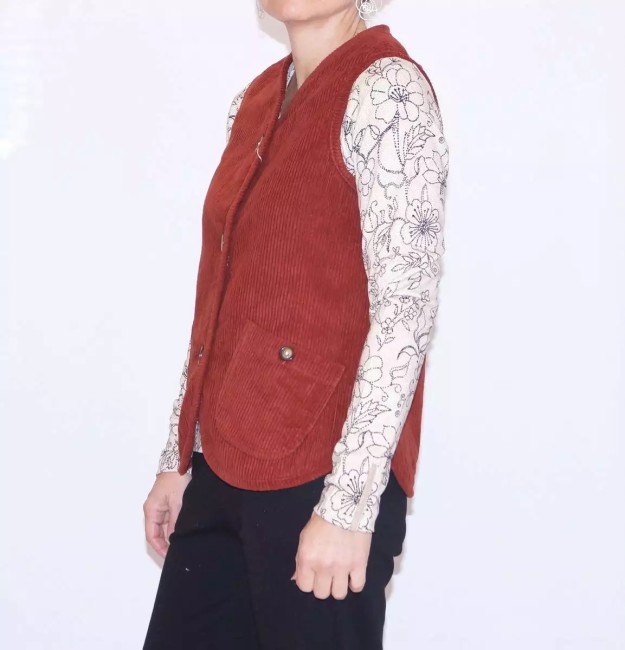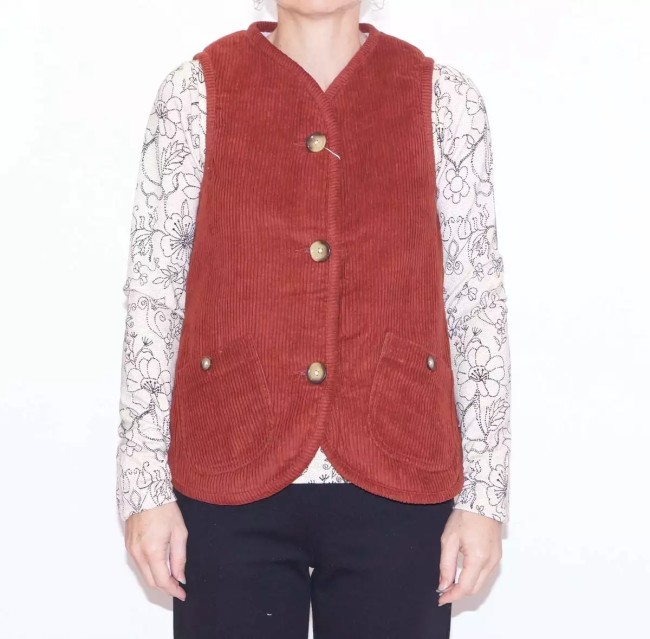 Gilet sans manches réversible, pratique et confortable. Un côté en velours côtelé de couleur rouille pour un style chaud et tendance. Un côté en moumoute blanche toute douce pour un effet cocooning. Deux poches arrondies du côté velours pour allier style et praticité. Bas arrondi qui apporte une finition féminine et élégante. À porter comme une pièce d’appoint quand les températures baissent ou en remplacement d’un pull. Composition : velours en coton et moumoute en polyester pour un mix de confort et de douceur. Un modèle polyvalent et douillet qui s’adapte à toutes vos envies.