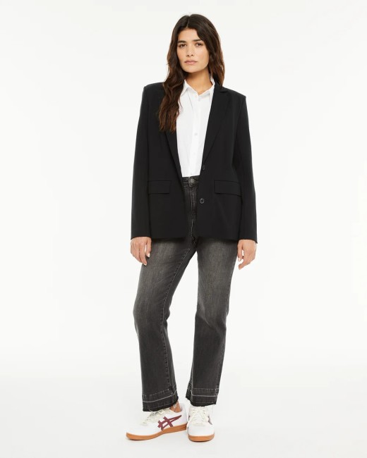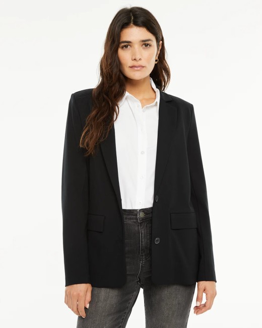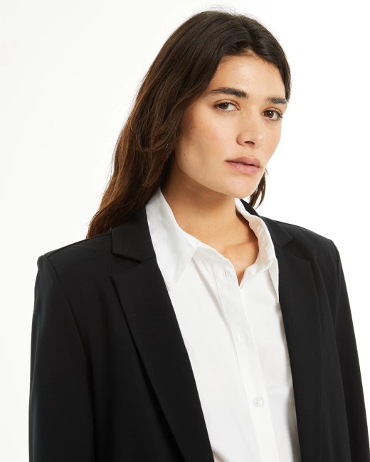Blazer confortable pour femme avec revers, fermeture boutonnée sur le devant et poches passepoilées. COMPOSITION : Viscose écologique 65 %. Nylon recyclé 32 %. Élasthanne 3 %.