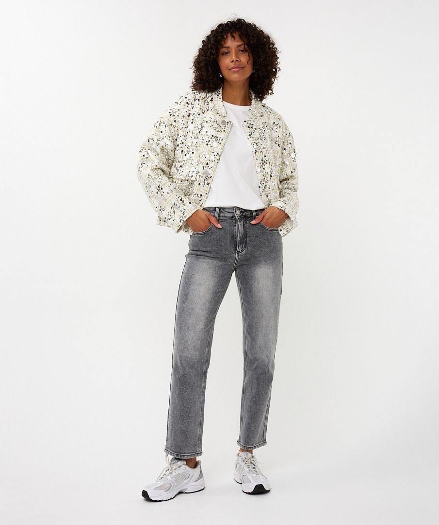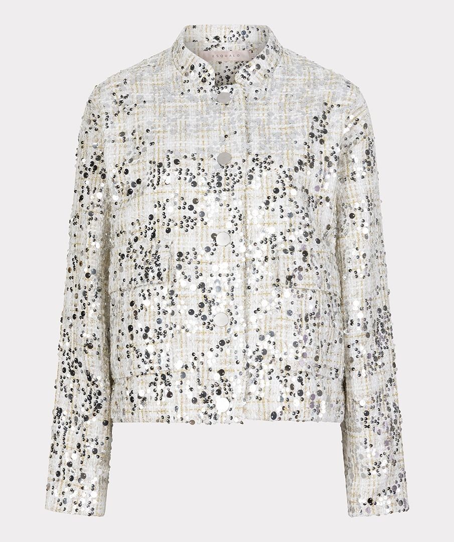 Blouson aviateur festif à boutons-pression, en tweed entrelacé de lurex scintillant et orné de sequins de différentes tailles - Composition : Extérieur : 100 % polyester // Doublure : 98 % polyester - 2 % élasthanne