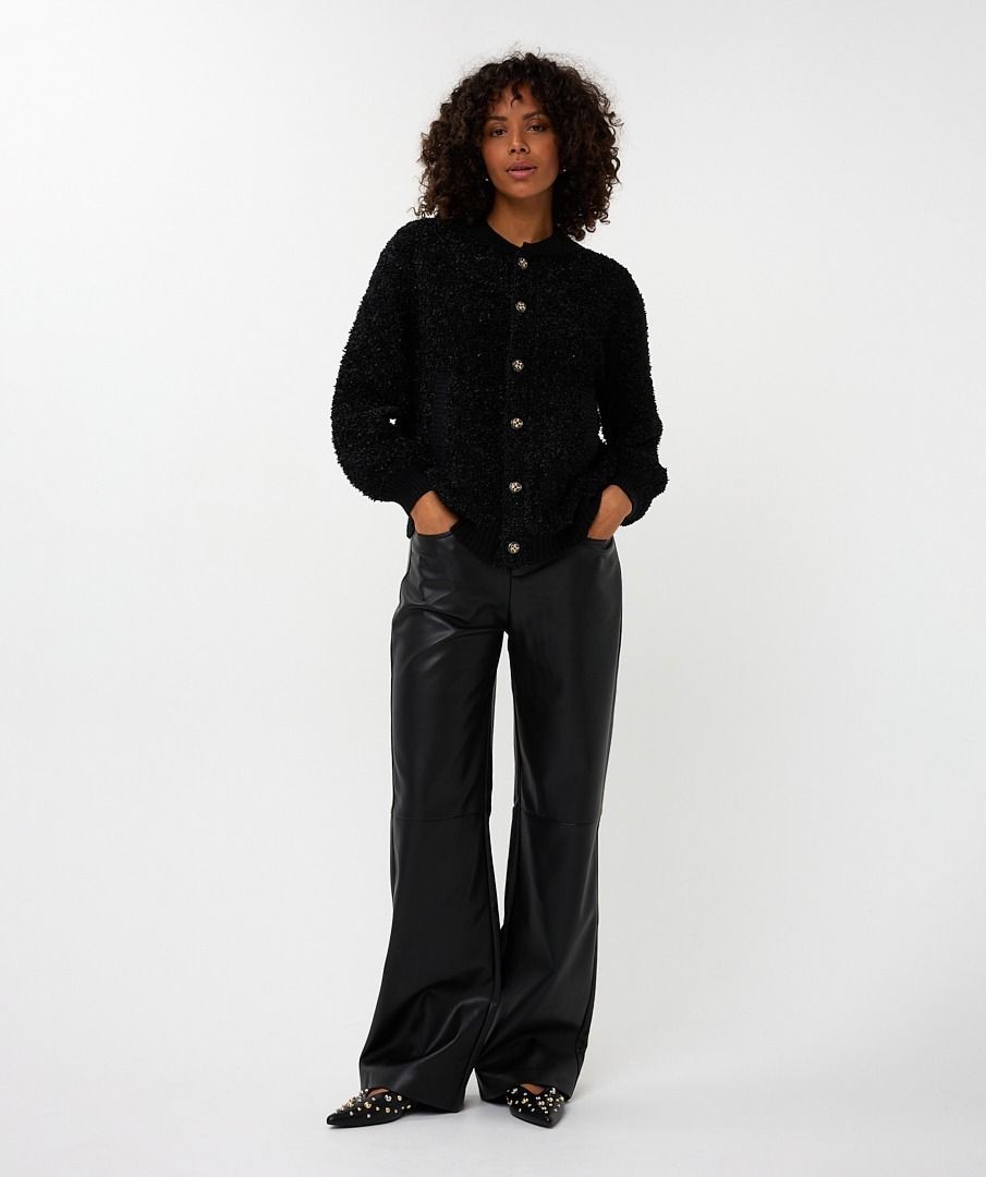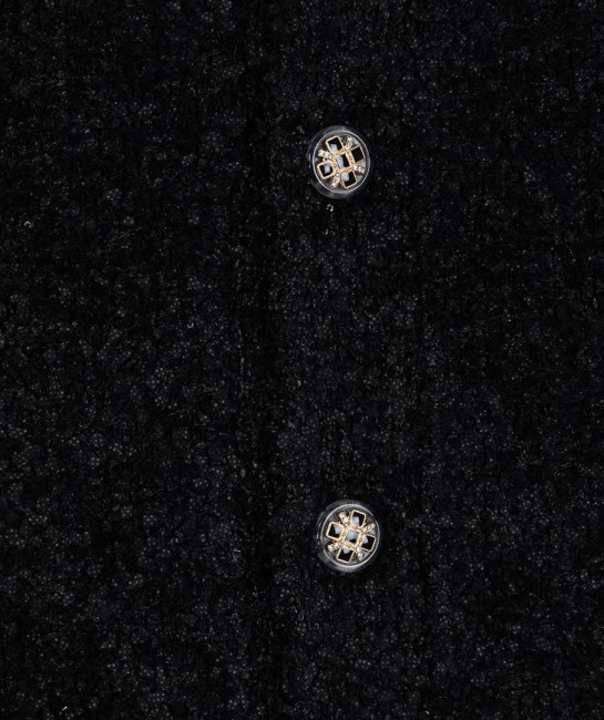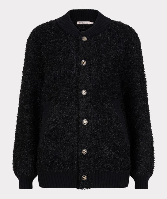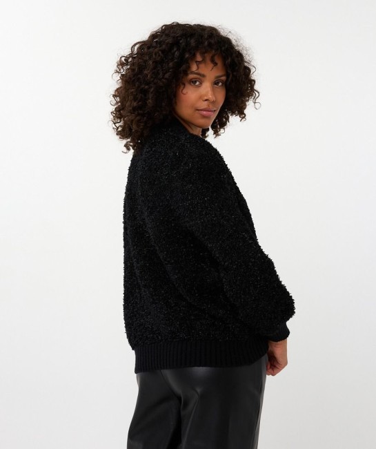Blouson aviateur en maille orné de magnifiques boutons tissés de lurex scintillant et de mini-paillettes pour une brillance subtile. Composition : 63 % nylon - 35 % polyester - 2 % métallisé