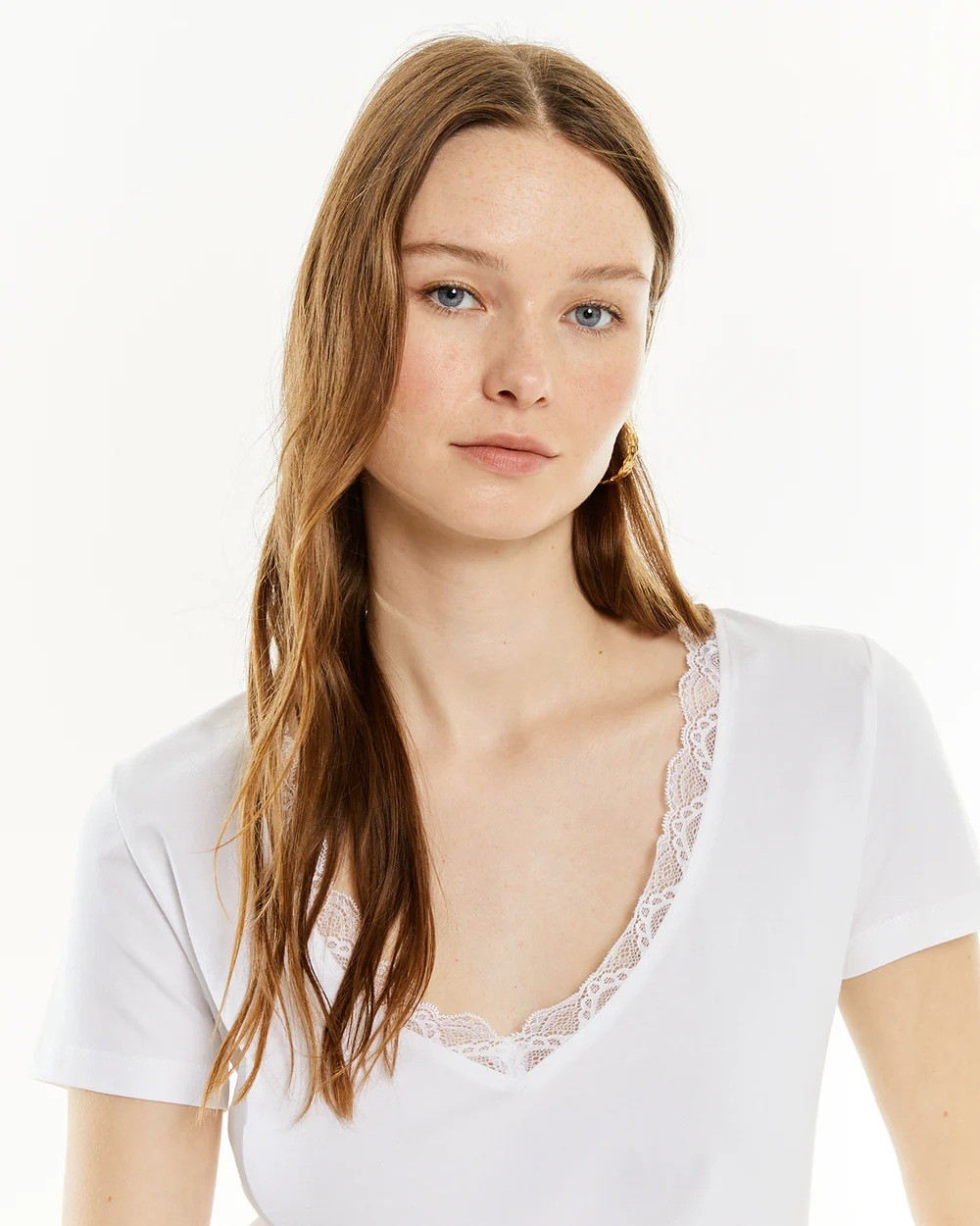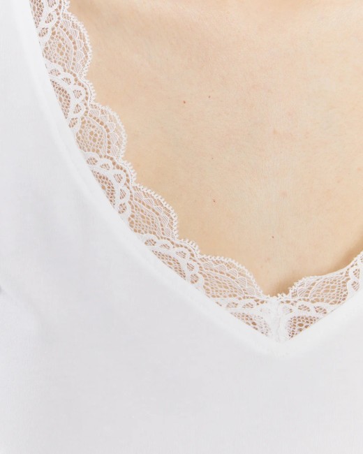 Haut ajusté pour femme avec bretelles et bordure en dentelle. Composition : 97% coton biologique - 3% elasthanne