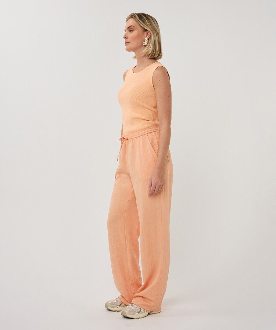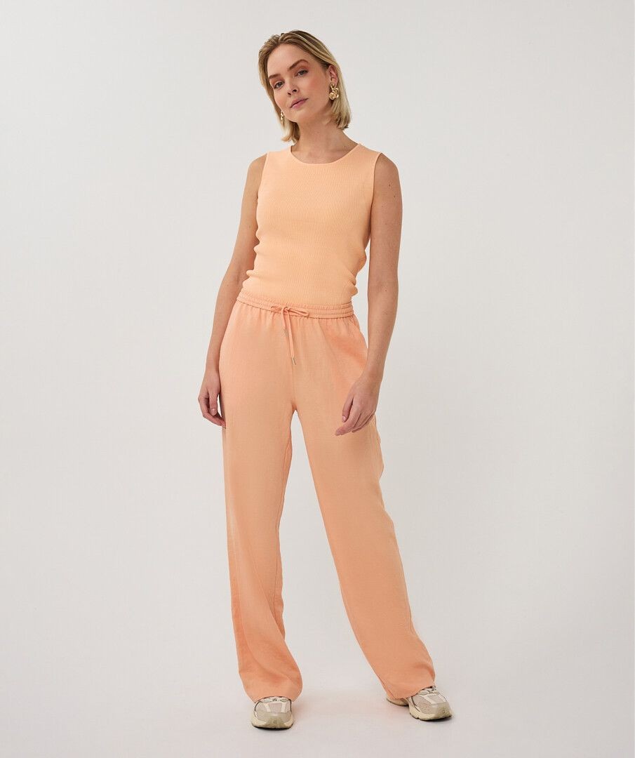 Description courte : Confortable et élégant, ce pantalon large pêche est idéal pour créer une silhouette fluide et féminine. Sa taille élastiquée et son cordon de serrage le rendent très agréable à porter. Description détaillée : Ce pantalon large Esqualo séduit par sa coupe fluide et sa couleur pêche douce et lumineuse. Sa taille élastiquée avec cordon de serrage assure un confort parfait tout au long de la journée, tout en mettant joliment la silhouette en valeur. Pratique et facile à porter, il possède des poches avant ainsi que des poches arrière classiques. Sa matière légère composée de 80 % rayonne et 20 % nylon lui donne un tombé élégant et agréable. À porter avec le blazer ou l’un des chemisiers assortis pour créer un ensemble chic et moderne. Détails : Coupe large et fluide Taille élastiquée avec cordon de serrage Poches avant et poches arrière Coloris : pêche Matière : 80 % rayonne, 20 % nylon Disponible jusqu’au 46 pantalon large femme - pantalon pêche femme - pantalon fluide femme - pantalon taille élastique femme - pantalon confortable femme - pantalon chic femme - pantalon femme printemps été - pantalon femme jusqu’au 46 - pantalon Esqualo - ensemble femme pêche - pantalon rayonne femme