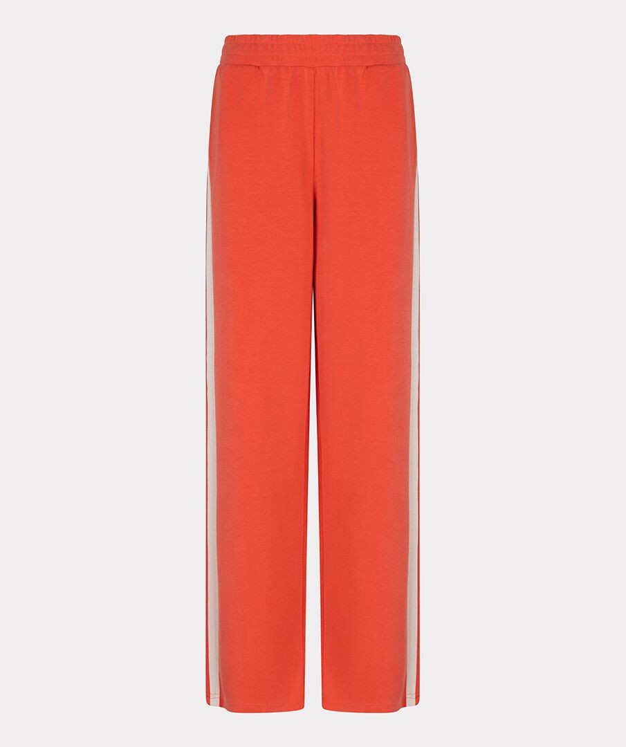 Description courte : Confortable et moderne, ce pantalon corail apporte une touche lumineuse à votre silhouette avec ses rayures contrastées sur les côtés. Description détaillée : Ce pantalon Esqualo séduit par sa jolie couleur corail et sa coupe fluide qui allonge la silhouette. Les rayures placées le long des jambes apportent une touche sportive et tendance tout en restant très élégantes. Sa taille élastiquée assure un confort parfait, tandis que les poches latérales sur le devant et les fausses poches passepoilées à l’arrière ajoutent une finition soignée. Confectionné en modal, il est particulièrement doux et agréable à porter tout au long de la journée. Détails : Pantalon fluide en modal - Coloris : corail - Rayures contrastées sur les côtés - Taille élastiquée - Poches latérales à l’avant - Fausses poches passepoilées à l’arrière - Disponible jusqu’au 46 - pantalon corail femme - pantalon modal femme - pantalon rayures femme - pantalon fluide femme - pantalon chic femme - pantalon femme jusqu’au 46 - pantalon Esqualo - pantalon sport chic femme - pantalon corail élégant - pantalon femme printemps été