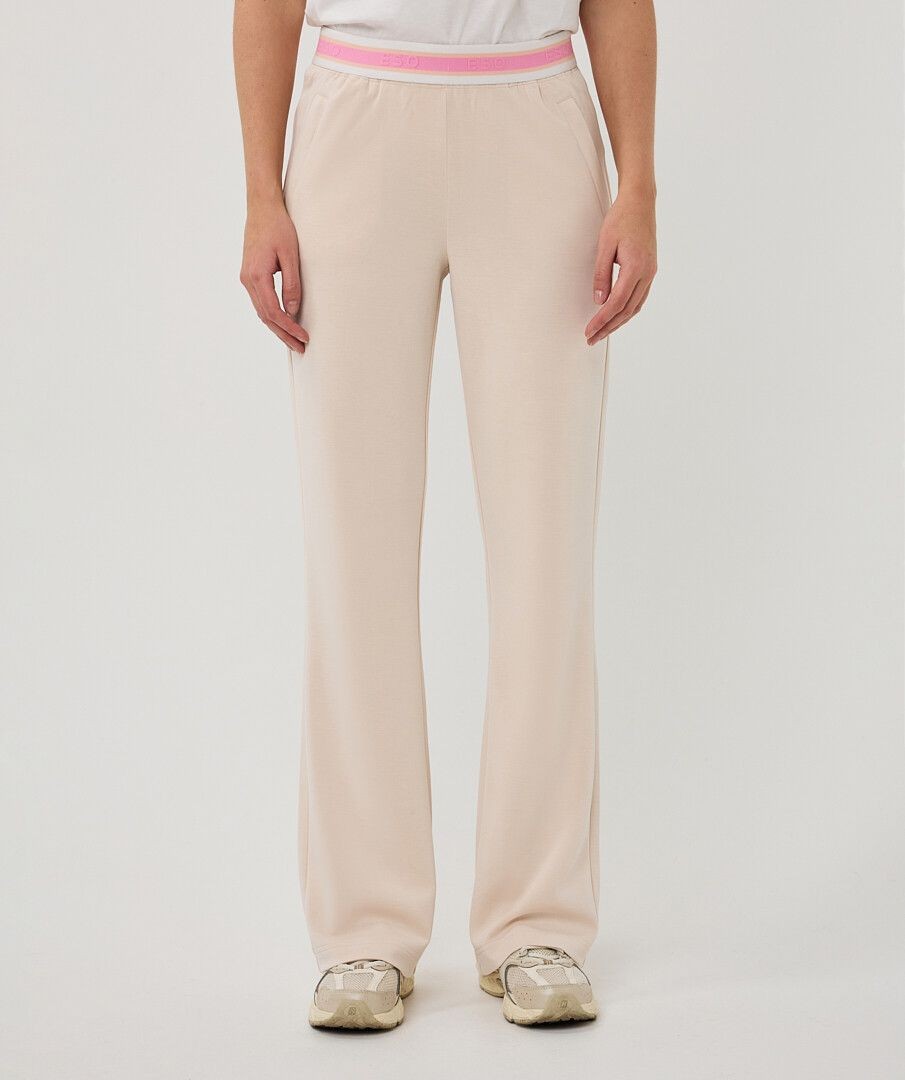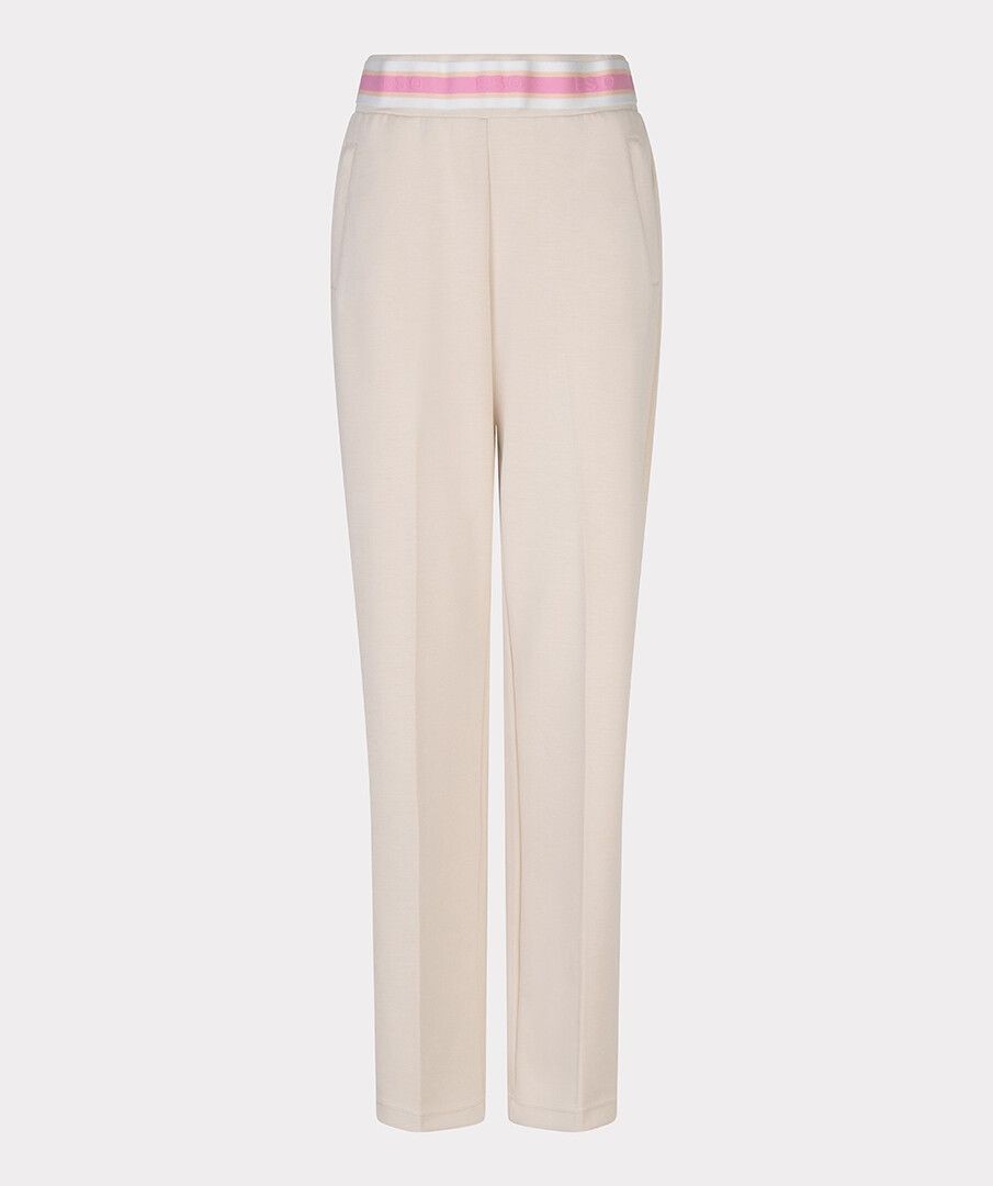 Description courte : Confortable et élégant, ce pantalon beige en modal est idéal pour une silhouette chic et décontractée au quotidien. Description détaillée : Ce pantalon en modal Esqualo séduit par sa coupe fluide et sa jolie couleur beige douce et facile à associer. Sa taille élastiquée ornée du logo EsQualo en relief apporte une touche moderne tout en assurant un confort parfait. Les poches latérales sur le devant et les fausses poches passepoilées à l’arrière lui donnent une finition soignée. Sa matière en modal, particulièrement douce et agréable à porter, accompagne naturellement les mouvements. À porter avec le pull ou le cardigan assorti pour créer un ensemble élégant et confortable. Détails : Pantalon fluide en modal Coloris : capucino Taille élastiquée avec logo EsQualo en relief Poches latérales à l’avant Fausses poches passepoilées à l’arrière Disponible jusqu’au 46 - pantalon capucino femme - pantalon modal femme - pantalon confortable femme - pantalon chic femme - pantalon taille élastique femme - pantalon femme jusqu’au 46 - pantalon Esqualo - ensemble modal femme - pantalon fluide femme - pantalon femme printemps été