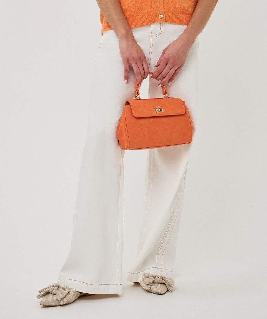 Description courte : Sac à main orange en PU recyclé avec fermeture à fente, bandoulière amovible et poche zippée au dos. Description détaillée : Apportez une touche de couleur à vos tenues avec ce sac à main orange Esqualo. Réalisé en PU recyclé à l’aspect cuir, il allie style et praticité. Ce modèle est doté d’une fermeture à fente élégante sur le devant, d’une bandoulière incluse pour le porter à l’épaule ou en travers, ainsi que d’une poche zippée à l’arrière idéale pour garder vos essentiels à portée de main. Son coloris orange lumineux et ses finitions dorées en font un accessoire chic et tendance. Détails : Sac à main femme, Coloris : orange, Aspect cuir, Matière : PU recyclé, Fermeture à fente sur le devant, Bandoulière incluse, Poche zippée à l’arrière, Finitions dorées - sac orange femme - sac à main orange - sac femme aspect cuir - sac PU recyclé femme - sac bandoulière femme - sac femme tendance - sac Esqualo - sac femme printemps été - sac femme élégant - sac avec poche zippée