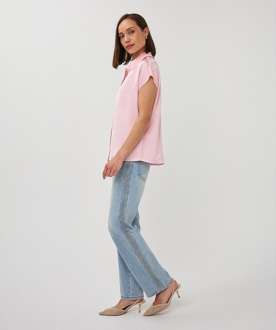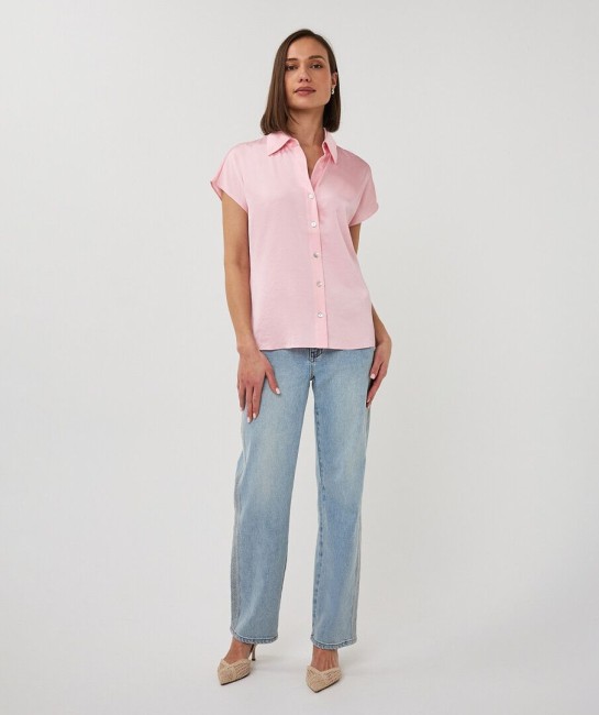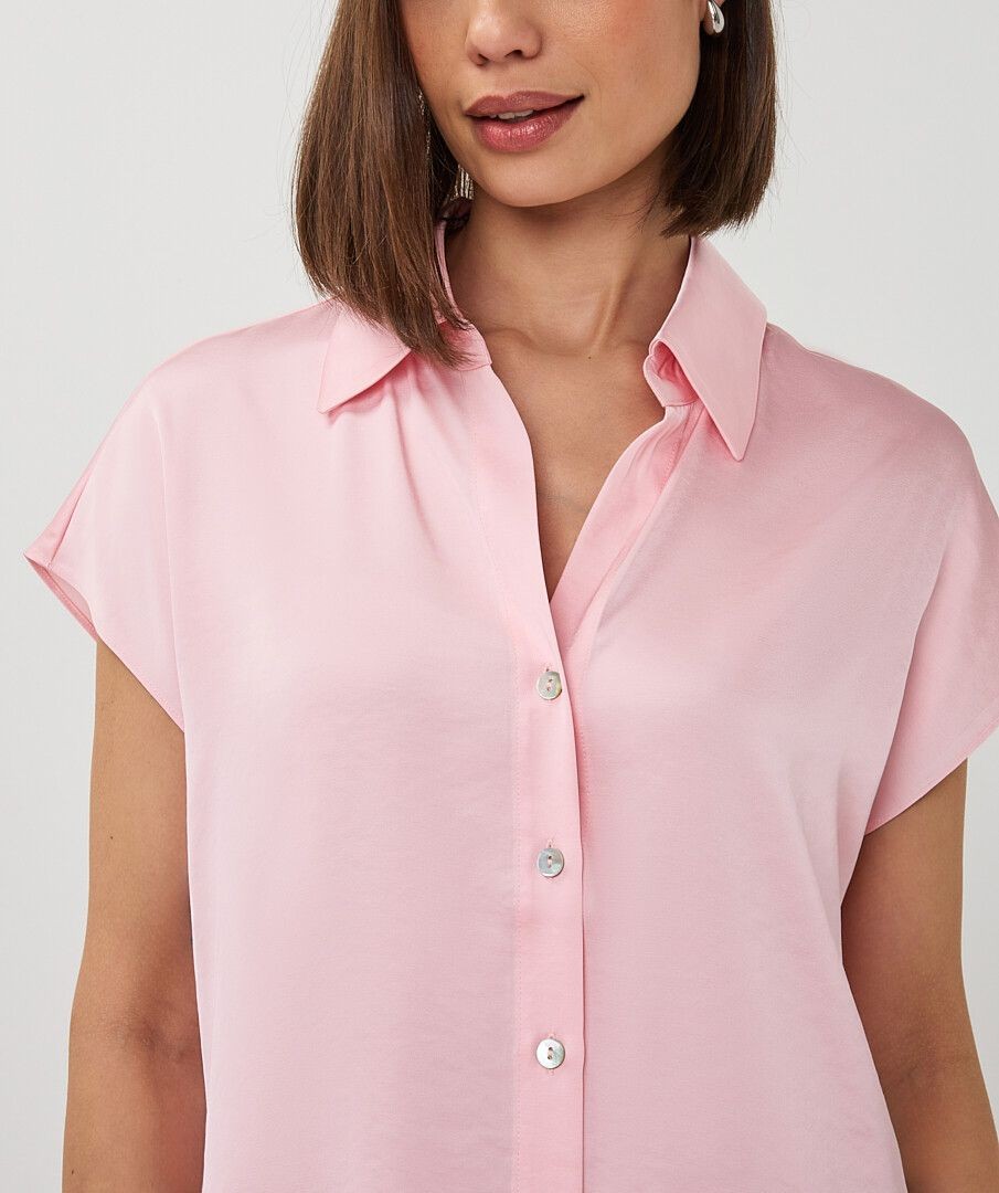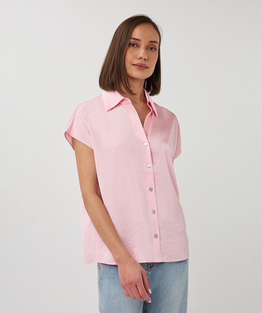 Description courte : Indispensable du dressing, ce chemisier rose en 54% Polyester et 46% Viscose allie élégance et simplicité. Sa coupe fluide et ses manches courtes en font une pièce facile à porter au quotidien. Description détaillée : Ce chemisier rose Esqualo séduit par sa coupe fluide et son style intemporel. Son col chemise classique et sa fermeture boutonnée apportent une touche élégante, tandis que ses manches courtes lui donnent une allure légère et moderne. Facile à associer avec un pantalon habillé, un jean ou une jupe, il accompagne toutes les silhouettes avec simplicité et raffinement. Détails : Chemisier rose fluide Manches courtes Col chemise classique Fermeture boutonnée sur le devant Coupe légèrement ample Disponible jusqu’au 44 - chemisier blanc femme - blouse rose femme - chemisier manches courtes femme - chemisier élégant femme - chemisier femme jusqu’au 44 - chemisier Esqualo - chemisier fluide femme - chemisier femme été